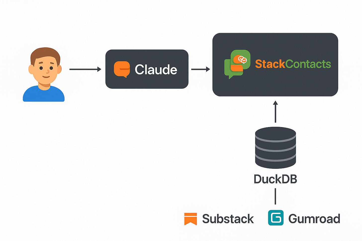 StackContacts uses something called an MCP (Model Context Protocol) server. It sits between the AI and your database: